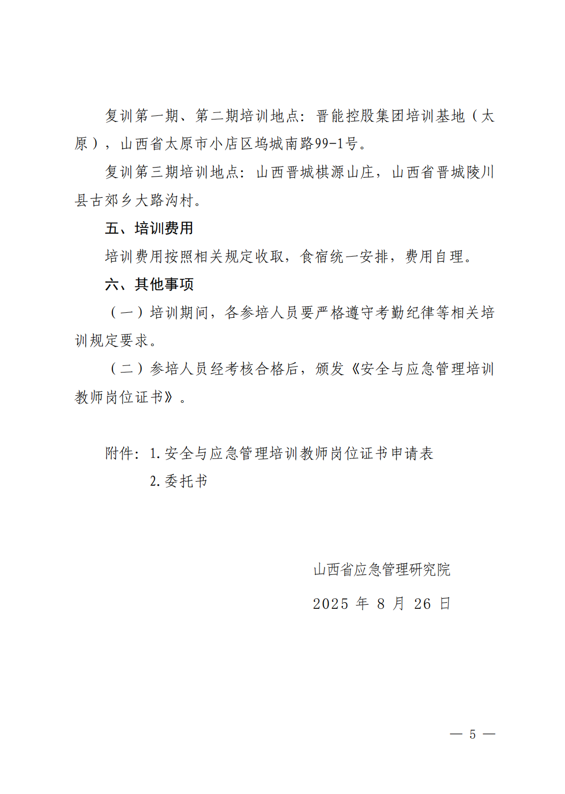 关于举办2025年晋能控股集团所属企业安全与应急管理培训教师培训班的通知